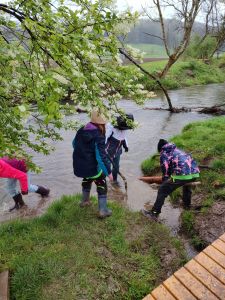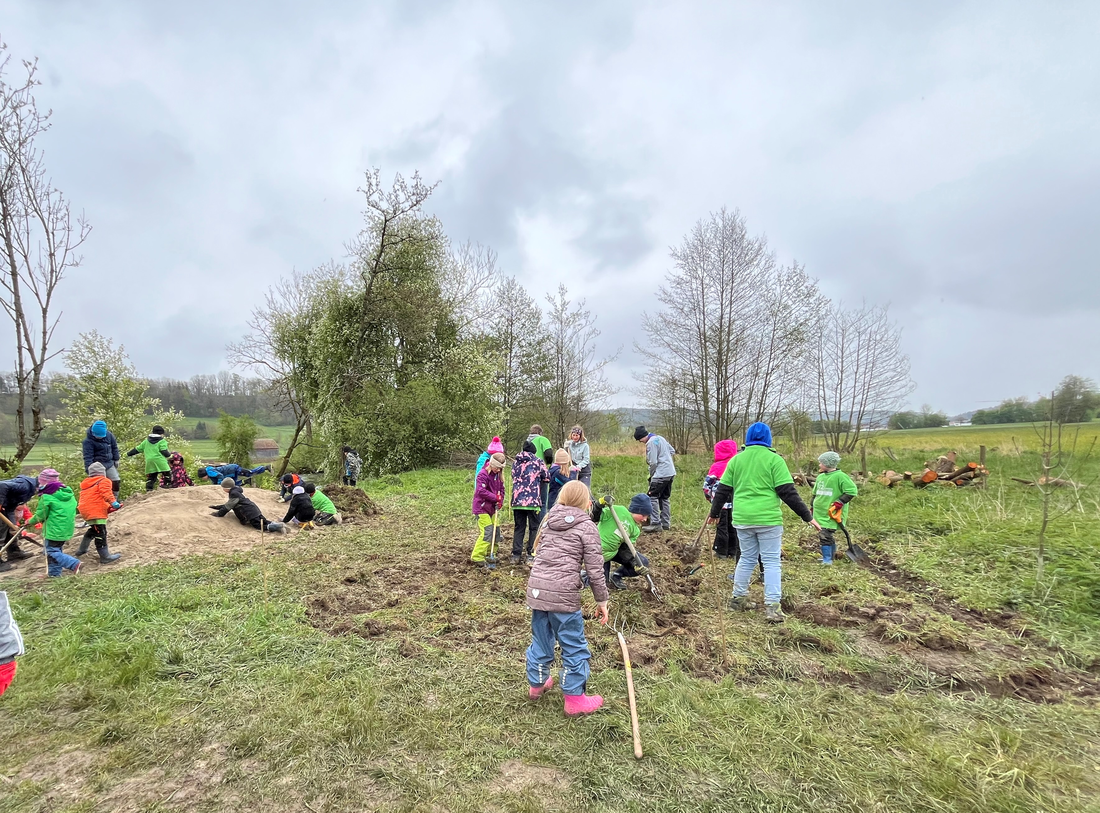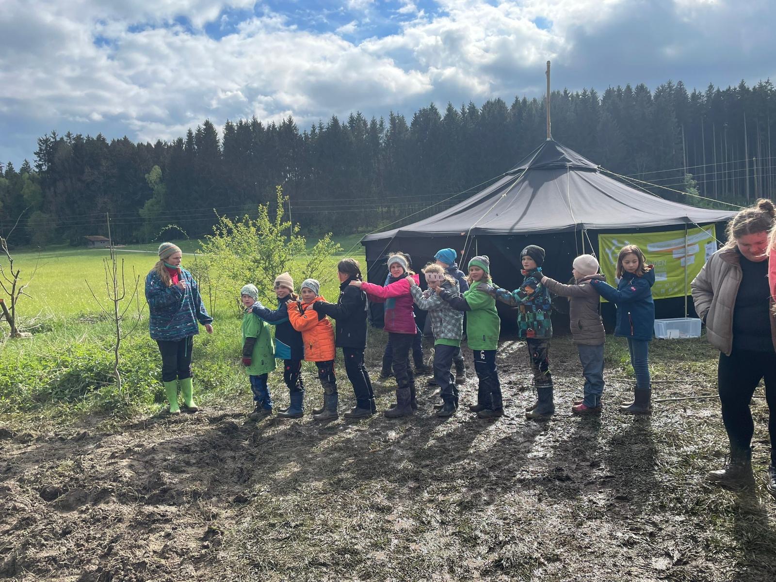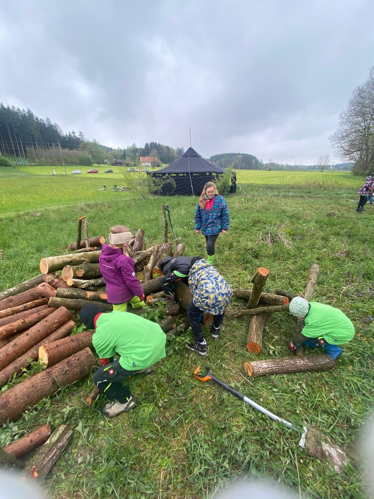 In Markt Rettenbach gab es ausgezeichnet gutes Wetter für Matschspiele, zum Song „dancing in the rain“! Fast 70 PSGler*innen hatten es sich dort zur Aufgabe gemacht den ganz kleinen Bewohnern der Erde zu helfen – den Insekten.  Dort sähten wir eine Blumenwiese an, platzierten Totholz, gestalteten den Weg und verewigten uns mit Landart auf einem Informationsschild. Zudem waren die fleißigen Handwerker*innen damit beschäftigt Insektenhotels zu bauen. Die jungen Expert*innen leiteten Besucher*innen fachkundig durch das Biotop.