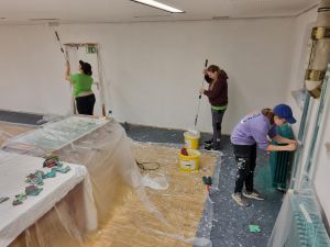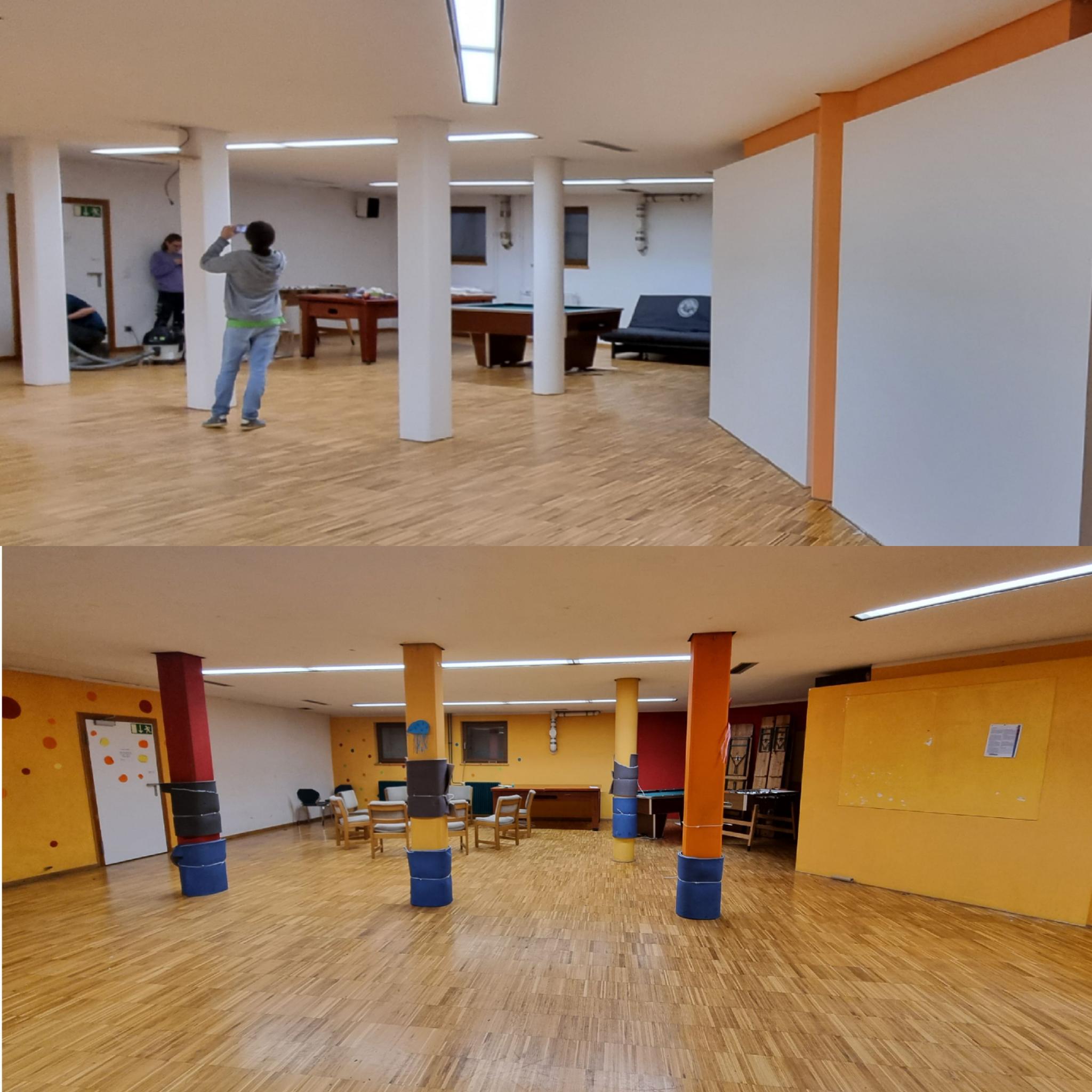 In Friedberg wurde mit vereinten Kräften der Gymnastikraum des Pfarrzentrums renoviert und neu gestaltet. Durch das gemeinsame Engagement erstrahlte der Raum wieder in strahlendem Glanz. Durch die neue Verkabelung können nun auch Beamer und Soundanlage genutzt werden, die gemütliche Sitzecke lädt zum Chillen ein.