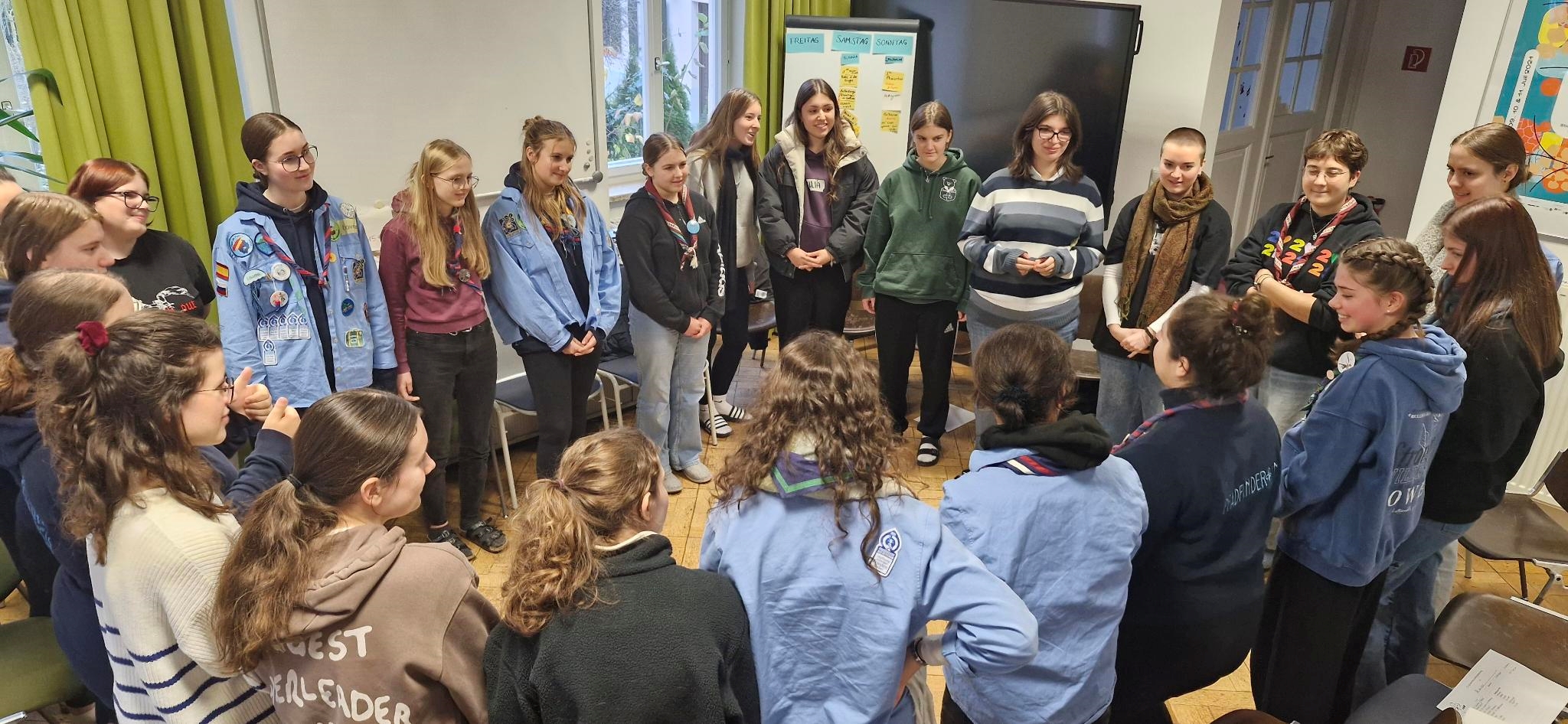 Im Rahmen unserer Leiter*innenausbildung führte unser Au-Wei-Team im November das Grundlagenmodul „Basics“ durch – mit ganzen 21 Teilnehmer*innen! Mitten in Augsburg, im Übernachtungshaus des SJR, verbrachten wir gemeinsam ein Ausbildungswochenende mit vielen pädagogischen Inhalten. Unsere angehenden Leiter*innen konnten sich mit verschiedenen Moderationstechniken, Leitungsstilen und der Elternarbeit beschäftigen. Die Gruppenphasen kamen auch nicht zu kurz – die konnten die Teilnehmer*innen durch eine kleine Übung direkt selbst erfahren. Daneben wurde sich gemeinsam mit der Frage auseinandergesetzt, was eine gute Leiter*in ausmacht und welche Rechte und Verpflichtungen eine solche Rolle mit sich bringt.