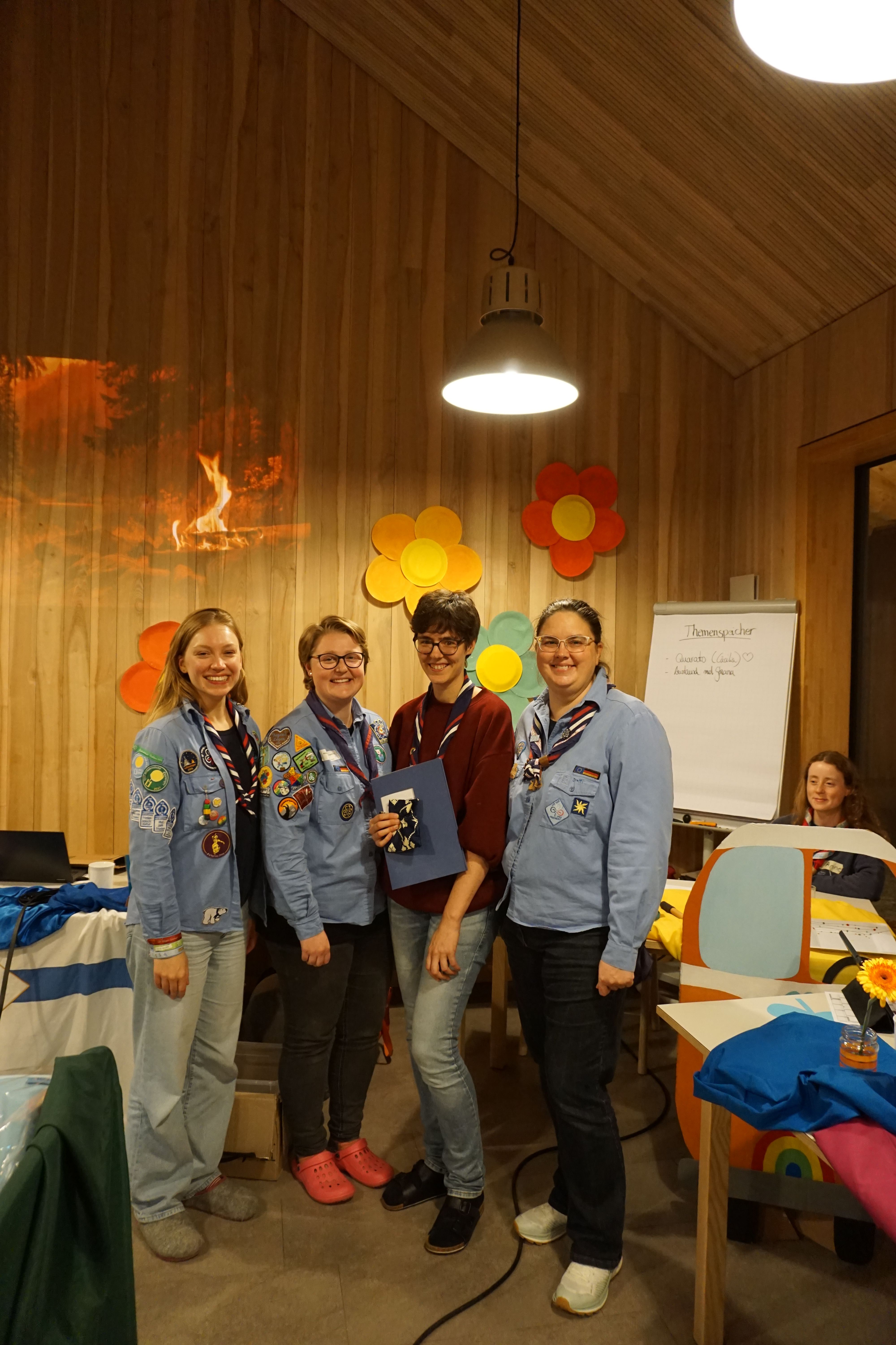 Besonders freute sich die Versammlung über zwei neue anerkannte LeiterinnenMia K. und Laura N. – sowie über eine Ehrenauszeichnung für herausragendes Engagement als Diözesanvorsitzende an Franziska H.,