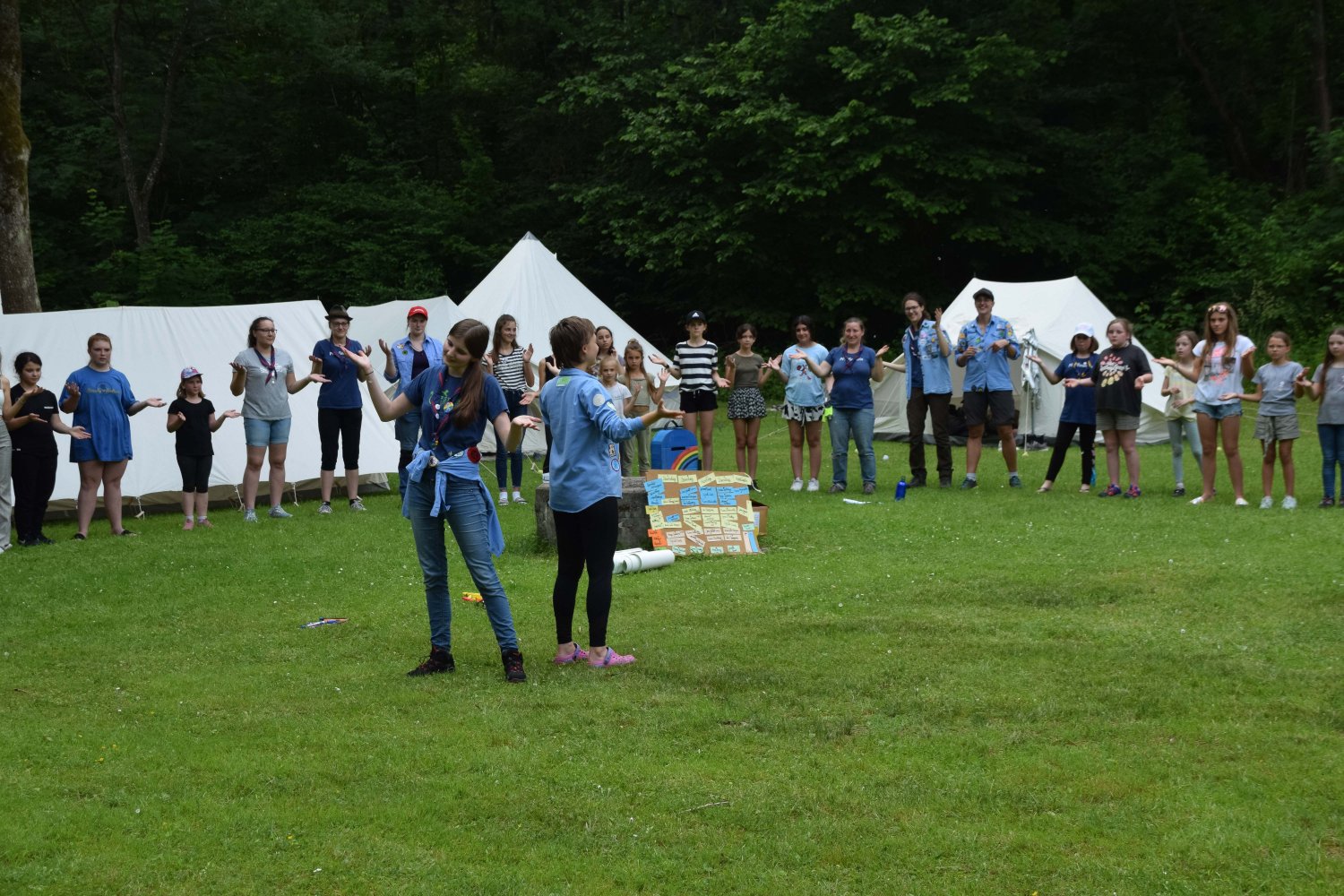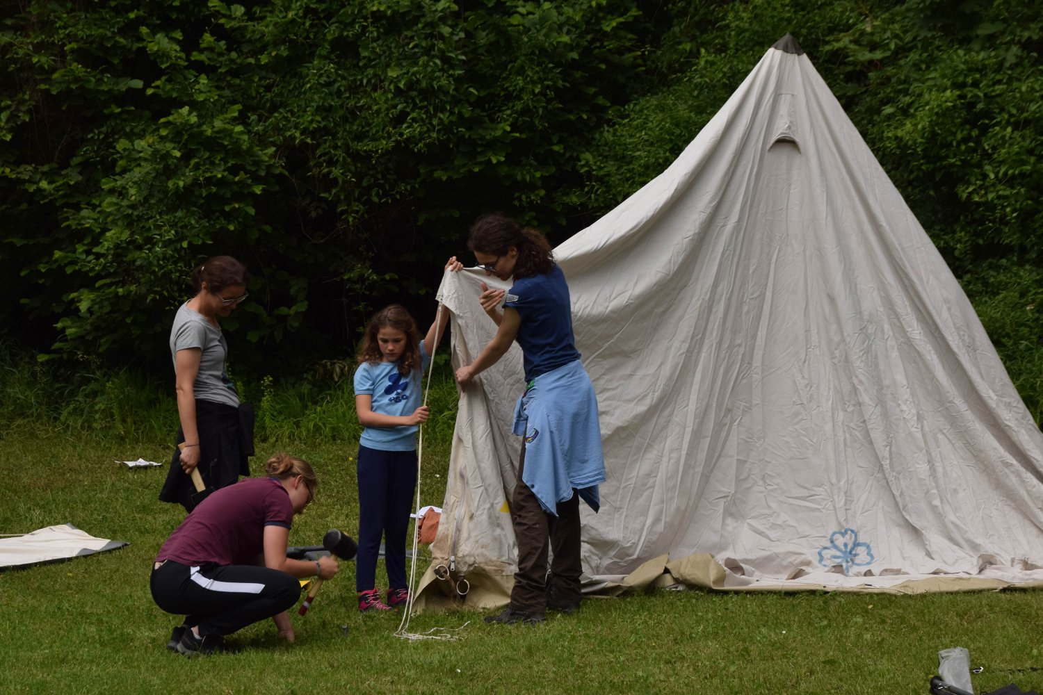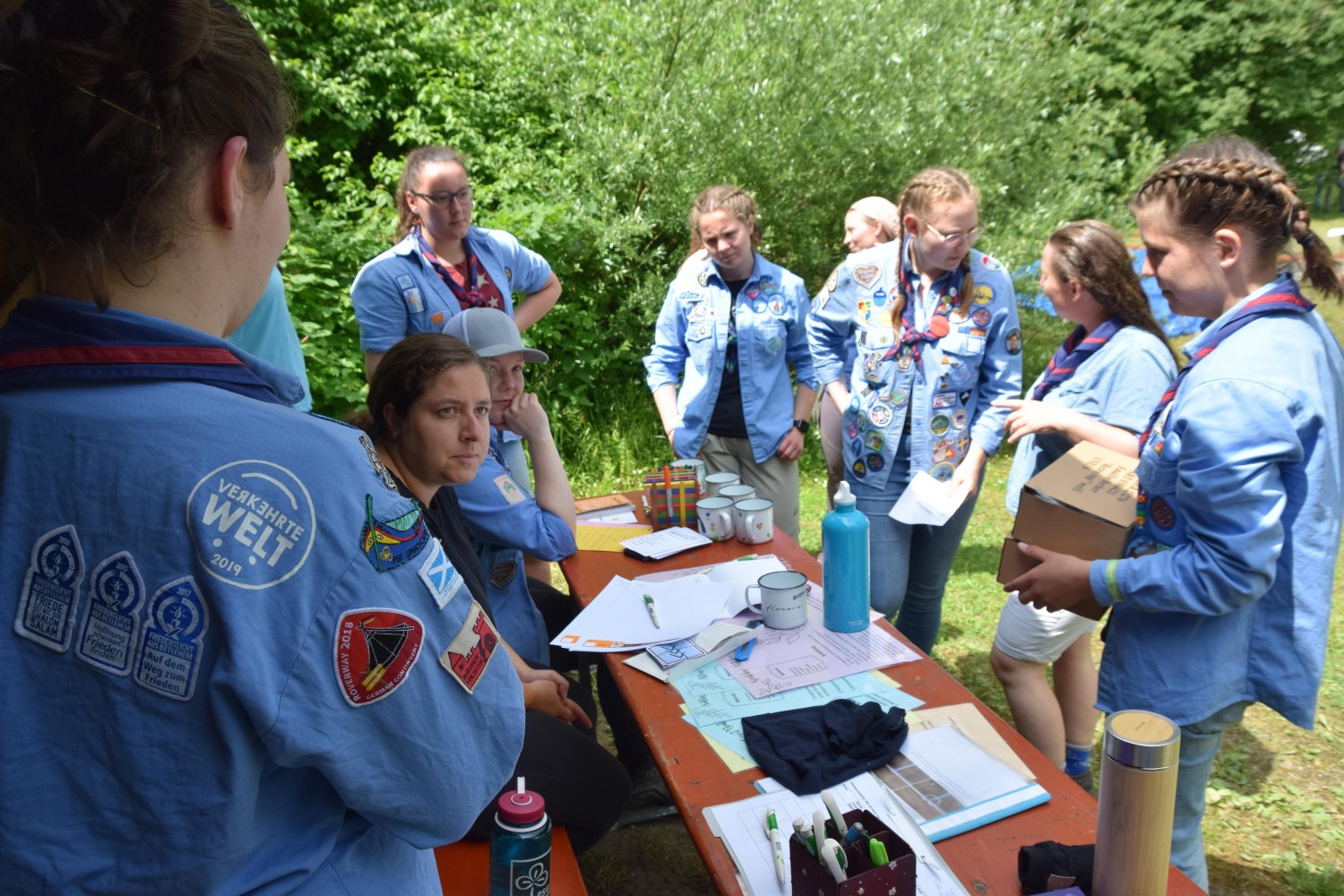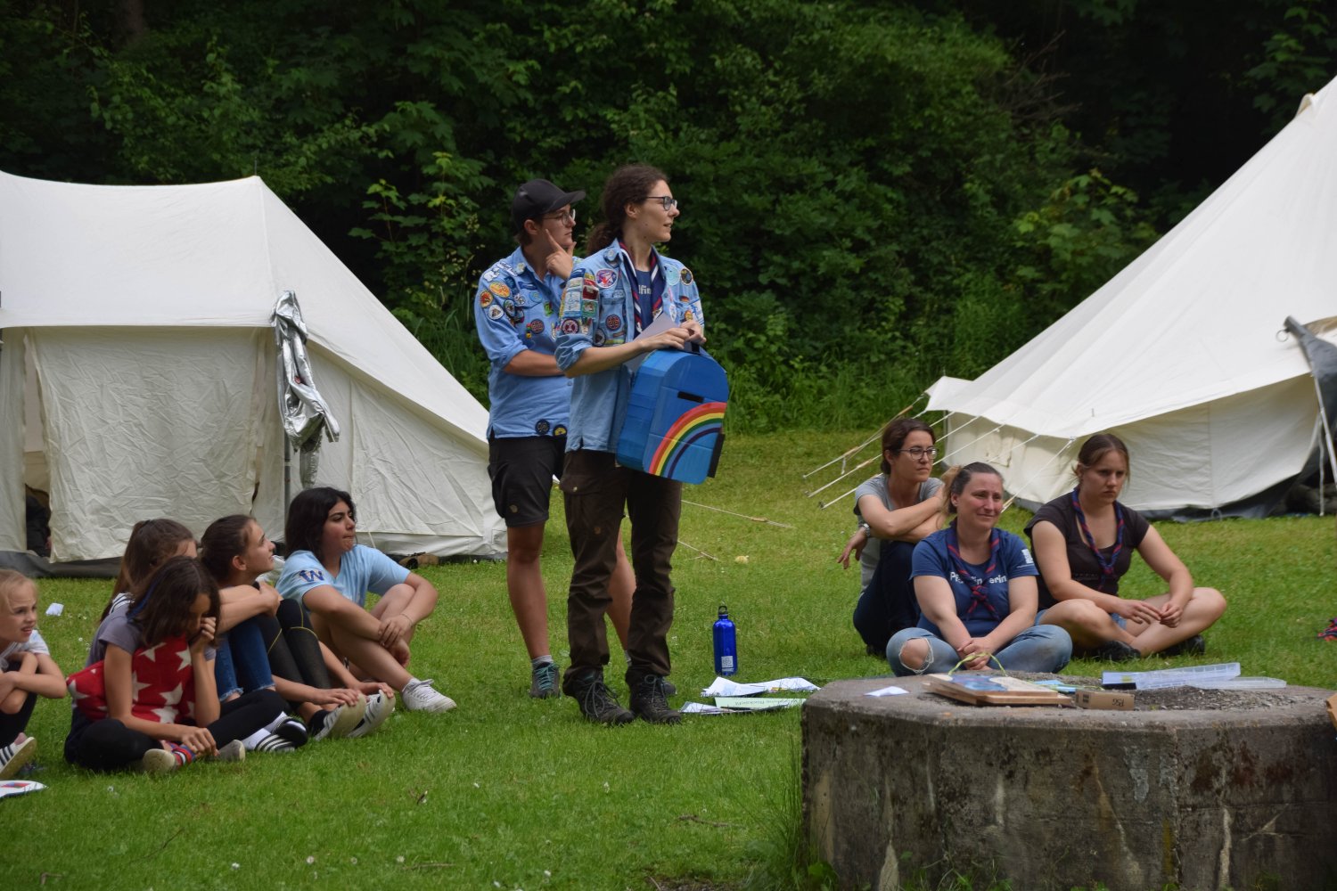 Passend zum Thema ein Rucksack voller Abenteuer gab es auch die Möglichkeit das Spezialabzeichen Abenteurerin* zu erlangen. Dafür mussten Workshops absolviert werden, die für das Leben als Pfadfinderin* und als Abenteuerin* wichtig sind: vom Erlernen von Wegzeichen und einem Grundwissen zum Hajk, das richtige packen eines Rucksacks, über Zeltkunde und Werkzeugkunde, bis zum Workshop Holz und Feuer und Lagerfeuerküche war alles dabei. Wir sind besonders stolz nach dem Lager über 70 kleine und große Abenteuerinnen* begrüßen zu dürfen!