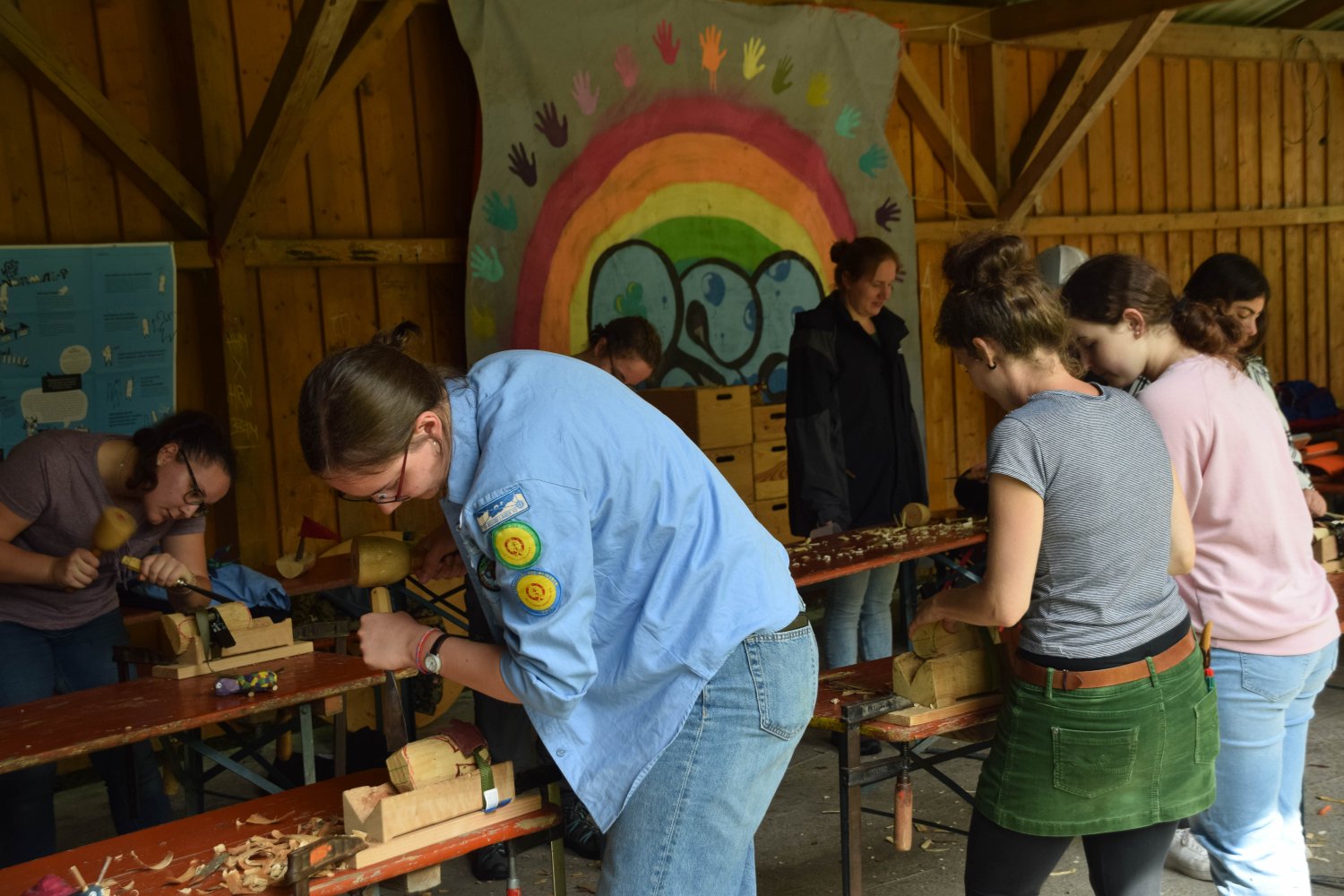 Die Pfadfinderinnen*tauchten in eine Welt voller Abenteuer ein: ob actionreich beim Kanufahren oder Parcour oder in kreativen Abenteuern beim Schnitzen, Upcycling, beim Fototransfer auf Holz oder Handlettering, beim Seife gießen und selber machen von Naturkosmetik konnten sich die Teilnehmerinnen* ausprobieren. Wer anschließend noch nicht genug hatte, konnte sein Abenteuerbuch selbst gestalten oder Emaille Tassen bemalen, um perfekt für das nächste Abenteuer gerüstet zu sein.